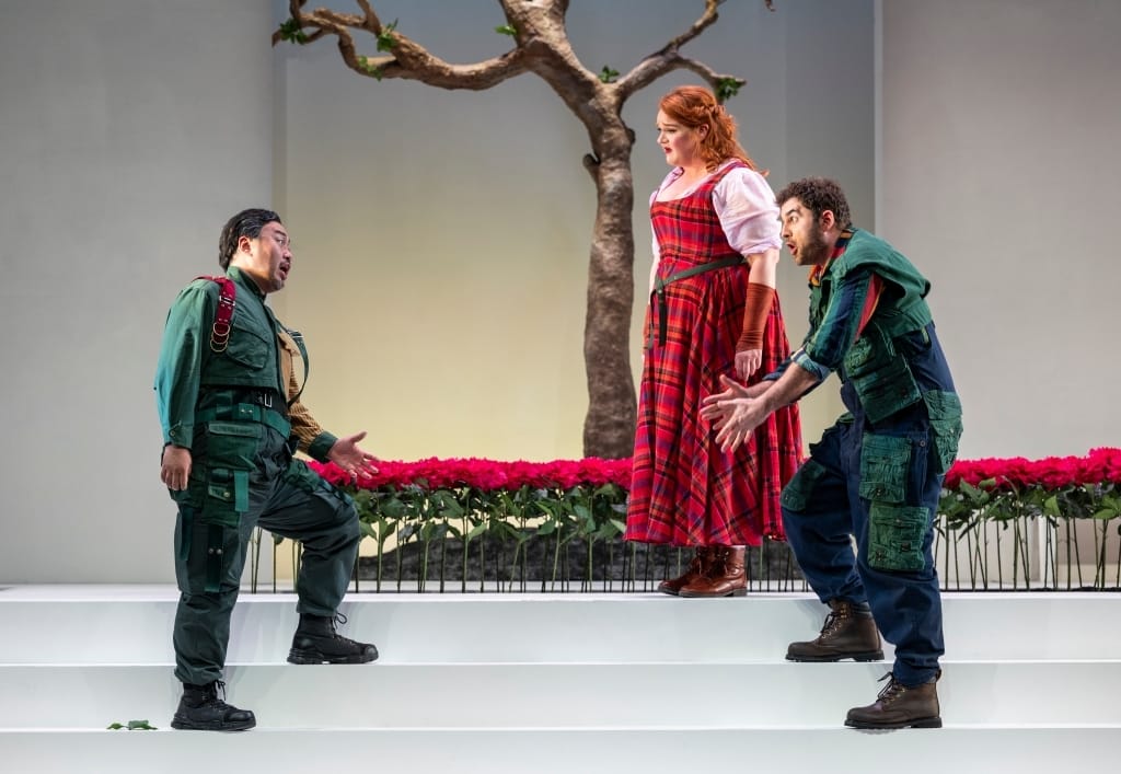 Keely Futterer’s Marcellina spends most of the opera longing for her Fedele (Leonora in disguise). Futterer’s nimble performance and lighter soprano voice were well suited to the role, infusing the part with lightheartedness. Joining her as part of the comic relief was Giachino, who was given a jaunty and rounded performance by bass Alex Soare. But stealing the show was soprano Vanessa Becerra in the title role Leonora. For half the opera, Becerra was disguised as Fedele, but in the second act, when she literally let her hair down, her character blossomed and her singing took flight as she traversed these dual roles with effortless vocal flourishes. Opposite Becerra was tenor Edgardo Rocha who’s smooth, longing portrayal of Florestano was easy to love. Finally, Joo Won Kang, Matthew Pearce, and Kameron Alston added their stand out performances as Rocco, Don Pizzarro, and Don Fernando respectively.