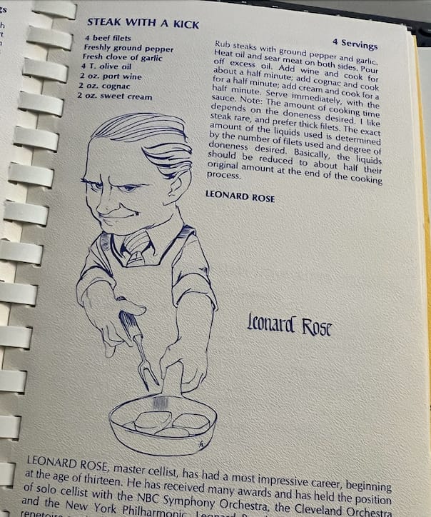 One of my most treasured keepsakes from this era with the QCSO is their cookbook titled Standing Ovations. It’s a quintessential Midwest cookbook, filled with hearty recipes and straightforward preparations. What truly makes it a keeper, however, are the contributions from the QCSO’s frequent guest artists, such as baritone Robert Merrill (Cheese Pancakes), cellist Leonard Rose (Steak With a Kick), and the Contiguglia Brothers piano duo (Fusilli with Creamy Zucchini), among others.